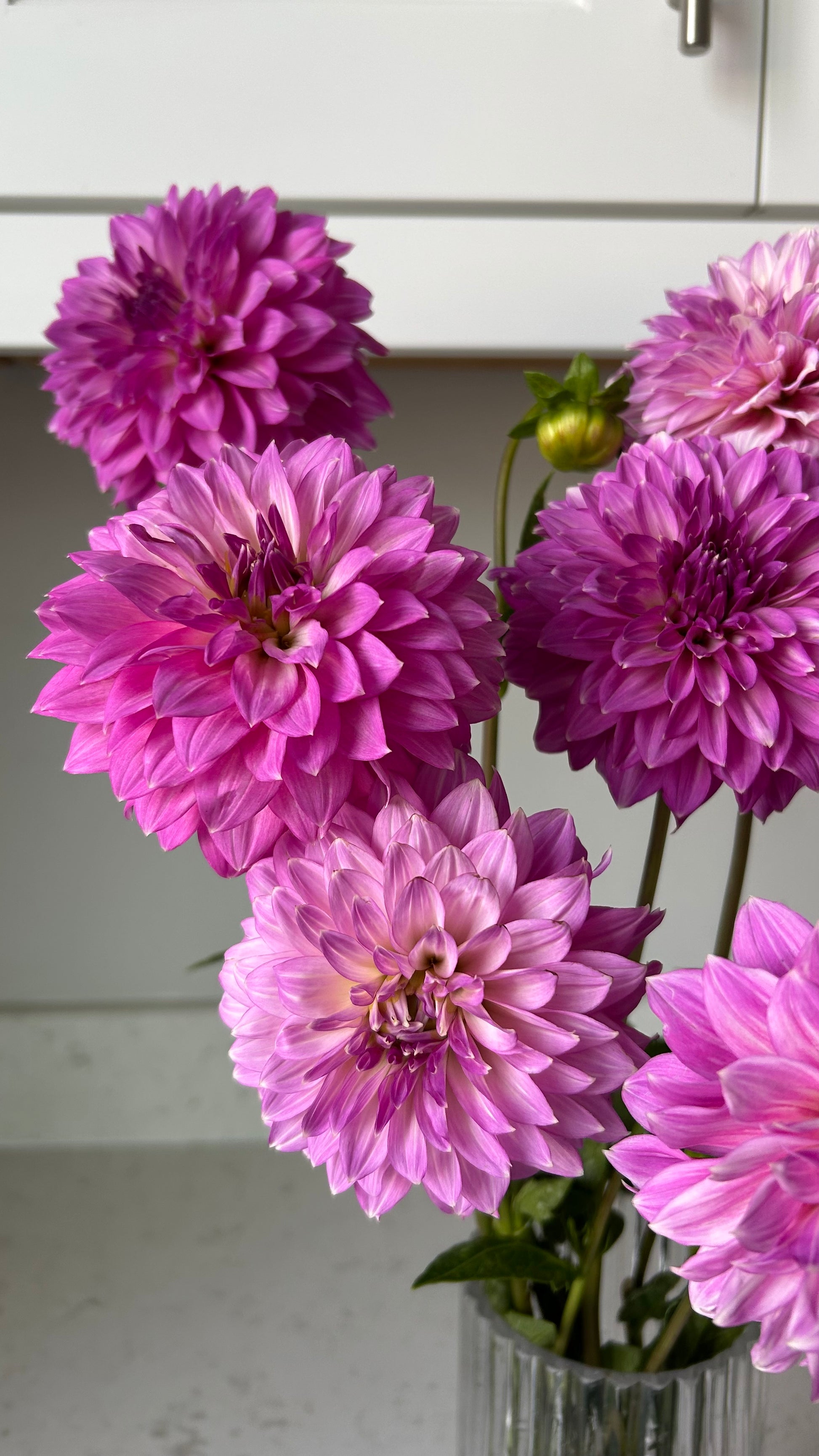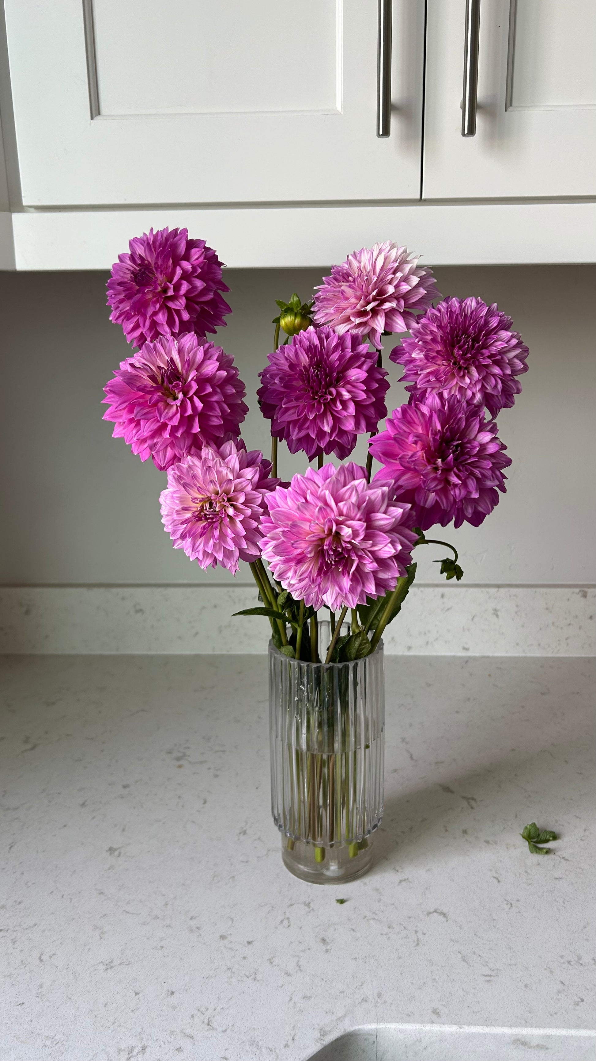 Purple petals tipped in white, long stems with tons of prolific blooms.