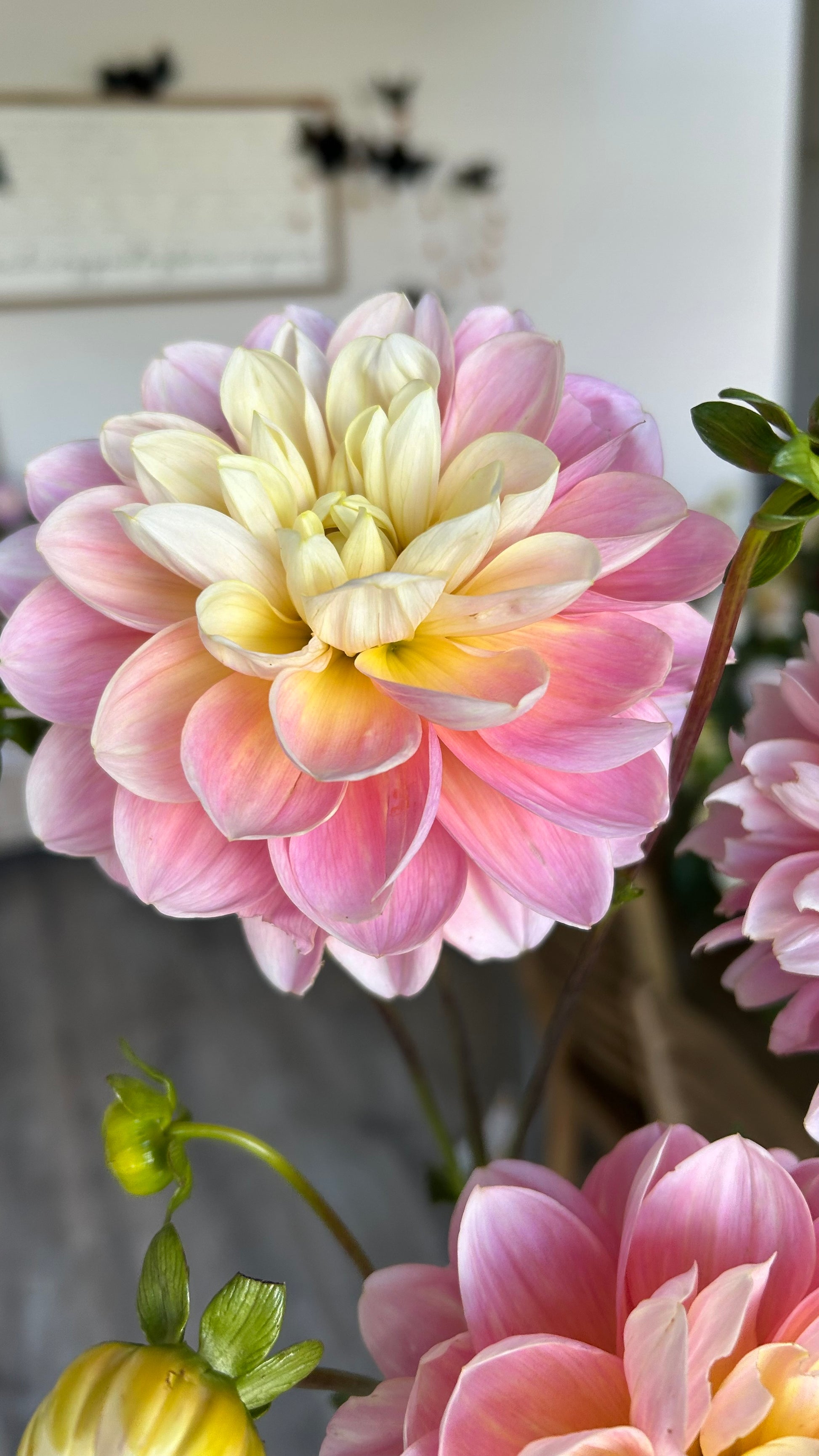 Soft pink and yellow blooms, long stems that are great for cuttings, consistent blooms all season long. Missed pictures of this one this year.