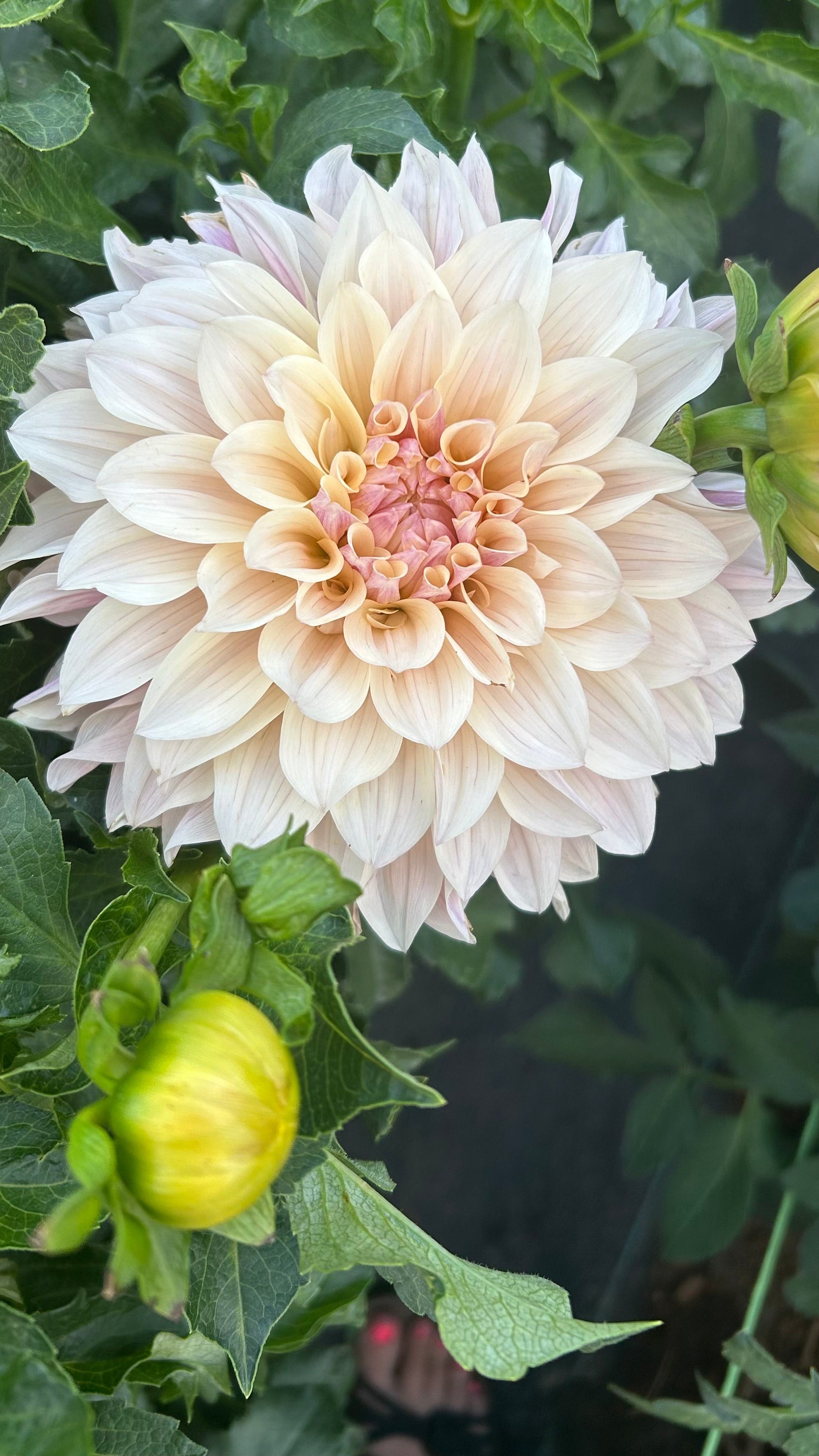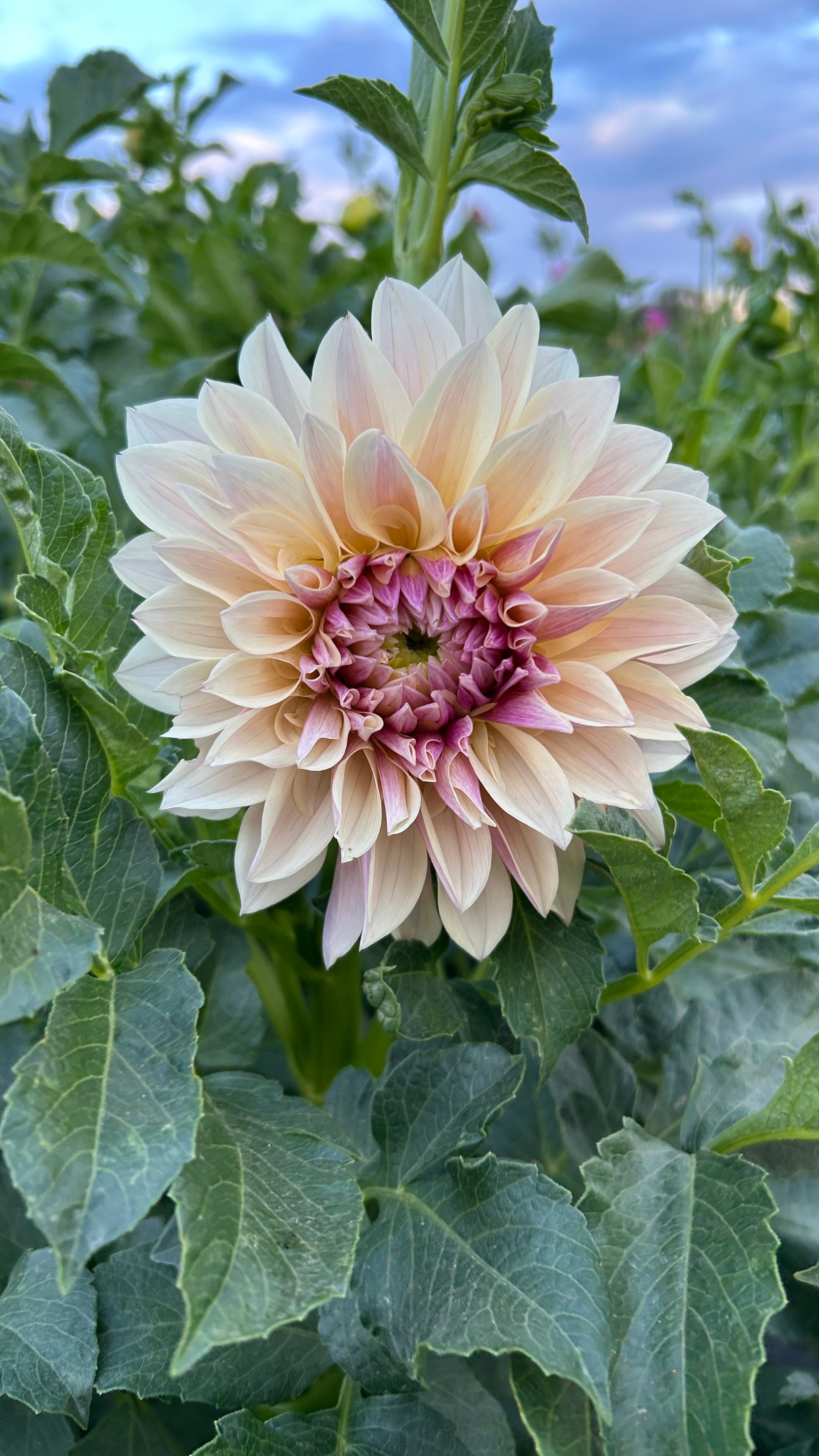 Lovely creamy blushy toned petals, everyone stops and loves this dahlia! Wonderful in arrangements, good vase life, great stems, incredible must have in my garden!