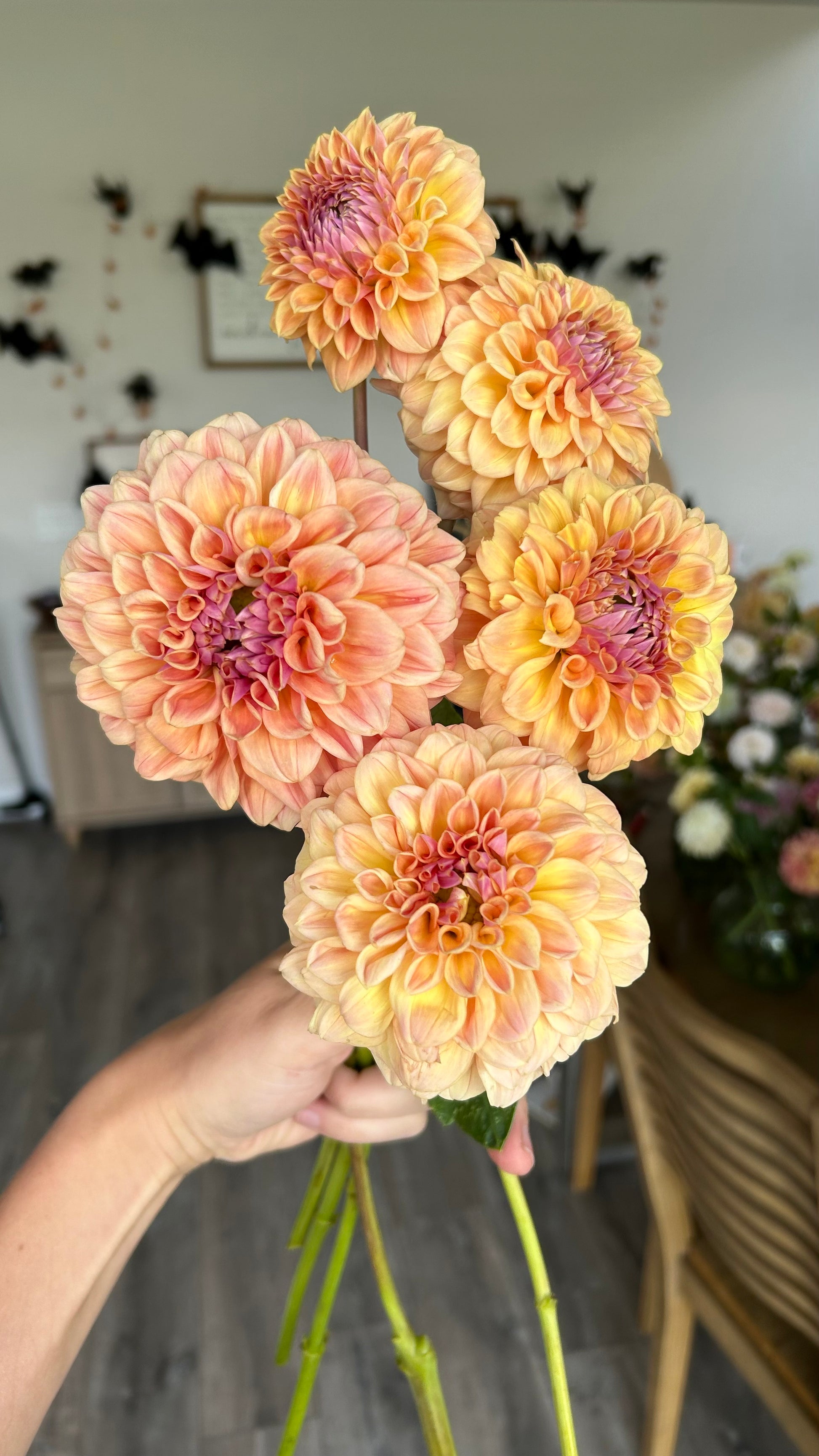 Yellow and bronze tone petals with a slightly lavender tip, first flush has a green eye then it fades as the season goes on. Wonderful bloomer.
