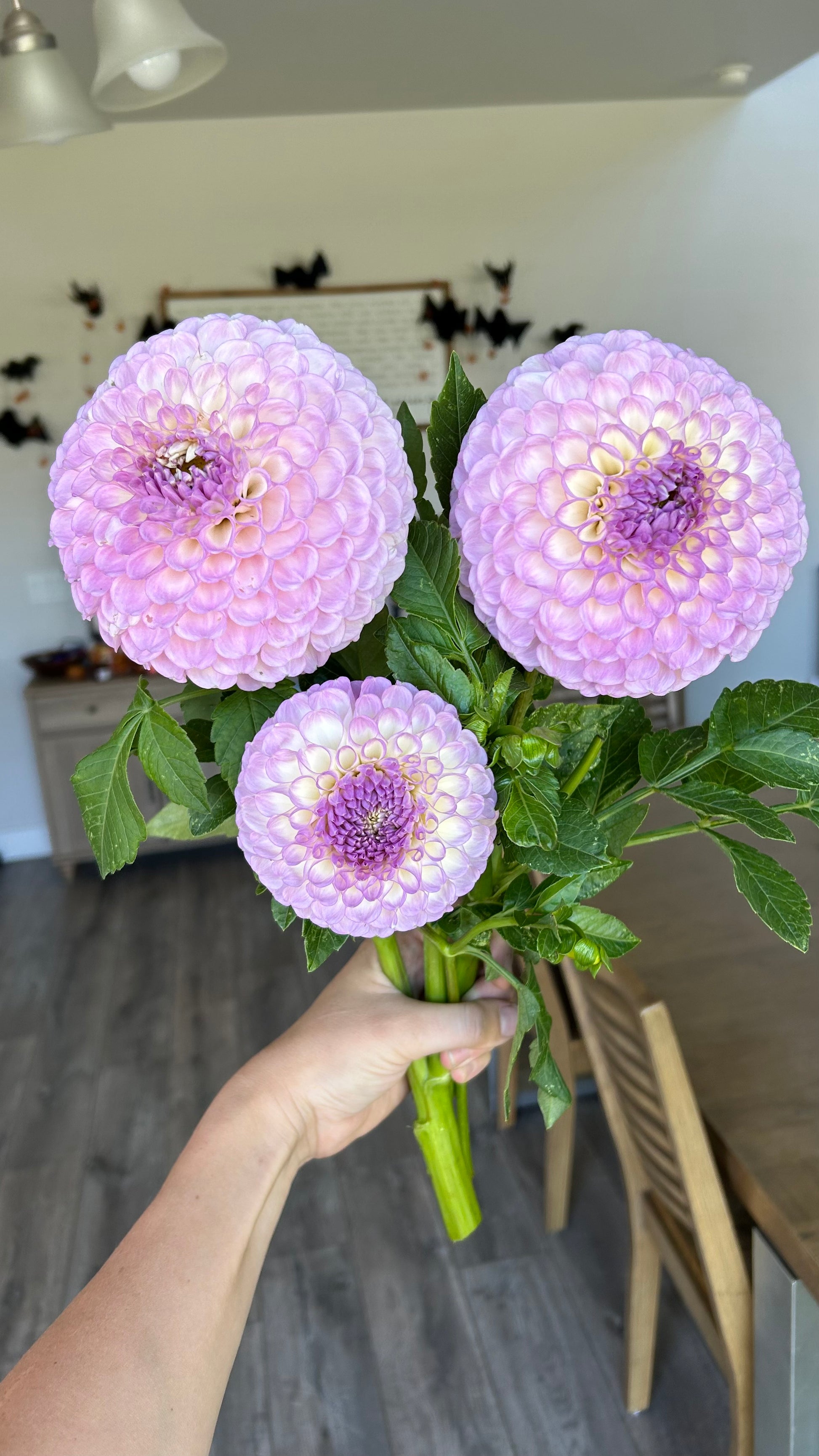 Massive ball shaped white and purple blooms! This is a true show stopper, this blooms stops everyone in their tracks, definitely a stand out and a must have!
