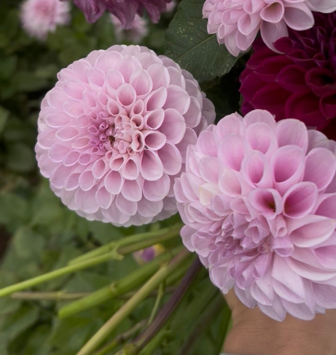 Delicate lavender and white ball shaped blooms, always in bloom, long stems good for cutting, good vase life, florist/wedding favorite.
